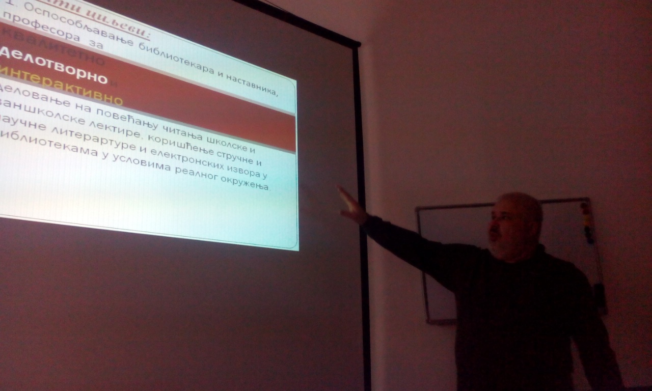 Врло едукативно и занимљиво предавање пружио нам је Мирко Марковић, који нам је говорио о мотивацији коришћења библиотеке, а самим тим и о књизи тј. тајни читања, пратећи рад библиотеке Чилеа, Хаитија, Јужне Африке, све до Барајева. Дознали смо за још један вид електронског читања књиге, првенствено, школске лектире, преко сајта ASK.RS. На поклон смо добили електронску књигу „Evergreen“, аутора Мирка Марковића.