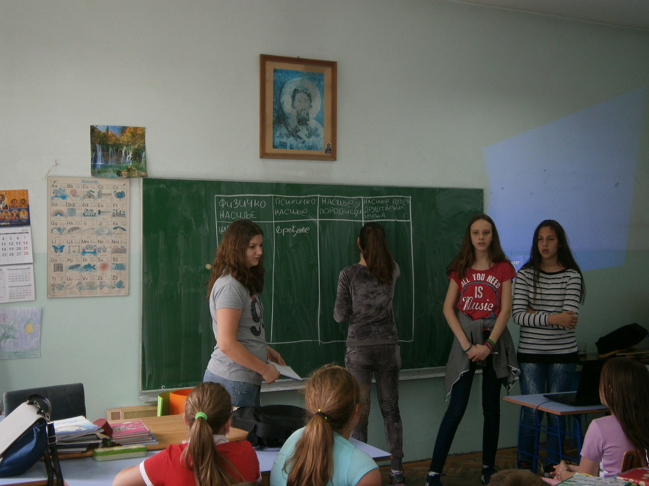 Једна од акција коју су планирали ученици након завршене обуке у оквиру пројекта „Образовање за прва детета“, названа „Причамо из искуства“, обухвата вршњачку едукацију о правима детета. Ђурђа Илић, Кристина Перишић, Исидора Максимовић, Катарина Родић и Сања Ђајић, ученице VII разреда наше школе, 10. јуна 2015. године реализовале су две едукативне радионице за ученике III разреда. Знање о правима детета које су стекле током обуке, на занимљив и креативан начин, прилагођен узрасту, пренеле су млађим ученицима. Ово дружење започето је разговором о томе шта су дечија права, а настављено радионицом на тему Људске потребе и жеље, након чега су ученице VII разреда разговарале са својим млађим другарима о томе шта је насиље, како га препознати и које врсте насиља постоје. На крају овог лепог дружења, сва одељења III разреда добила су на поклон разнобојне хамере и по једну таблу за своје учионице.