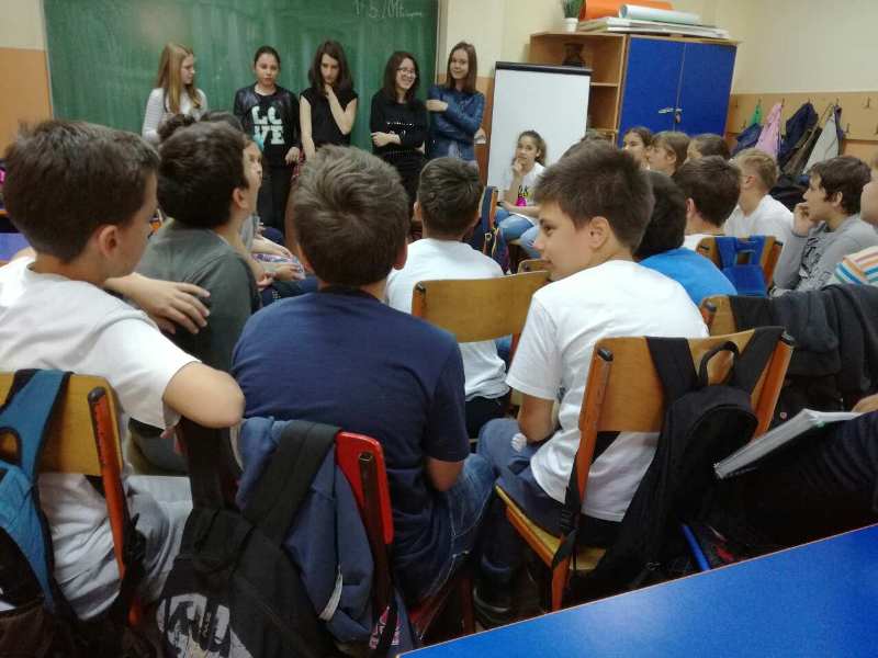Током месеца маја, уз подршку школског тима за остваривање пројекта, вршњачки тимови су реализовали радионице. У свим одељењима трећег и четвртог разреда одржали су радионице о правима детета, дискриминацији, електронском насиљу, потребама и жељама.