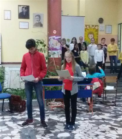 Хор ученика петог разреда извео је песму ‘’Ebony and Ivory ‘’(Paul McCartney and Stevie Wonder).