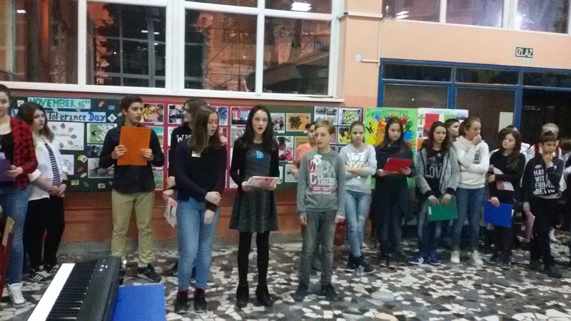 Презентовани су и цитати песме о толеранцији ‘’The highest result of education is tolerance’’ (Helen Keller), након чега је отпевана песма ‘’Imagine’’ (John Lennon).