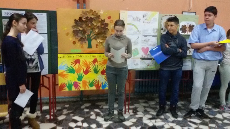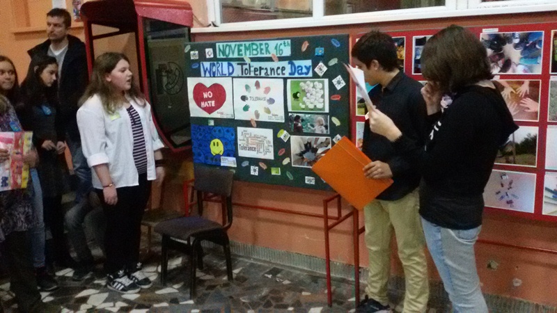 Неколико ученика нас је упознало на јапанском језику са кључним речима које симболизују толеранцију. Потом је уследила презентација боравка наших ученика у Швајцарској, у месту Троген, којом су нам пренели своја искуства у интеркултуралној размени са ученицима, припадницима других националности, Македонцима и Албанцима.