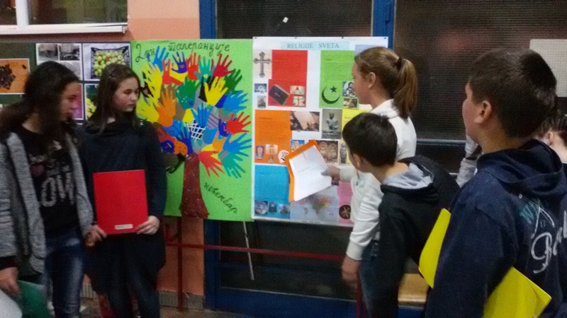 Како различите вероисповести доприносе очувању мира, универзалних људсих права и слобода, различитости, борби против предрасуда, представили су нам ученици кроз постер-презентацију коју су израдили на часу географије. Презентација је обухватила религије: ислам, хришћанство,будизам, конфучијанство, хиндуизам, јудаизам. Након представљања религија, ученици су извели кореографију на једну реп композицију, јер реп музика представља симбол борбе против расне, верске, социјалне и друштвене дискриминације.