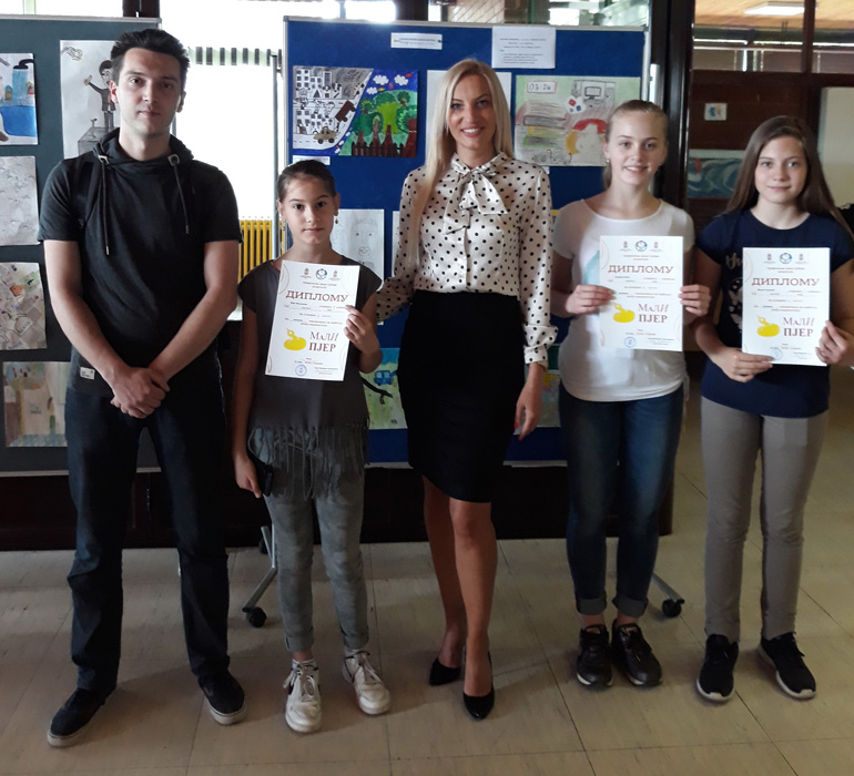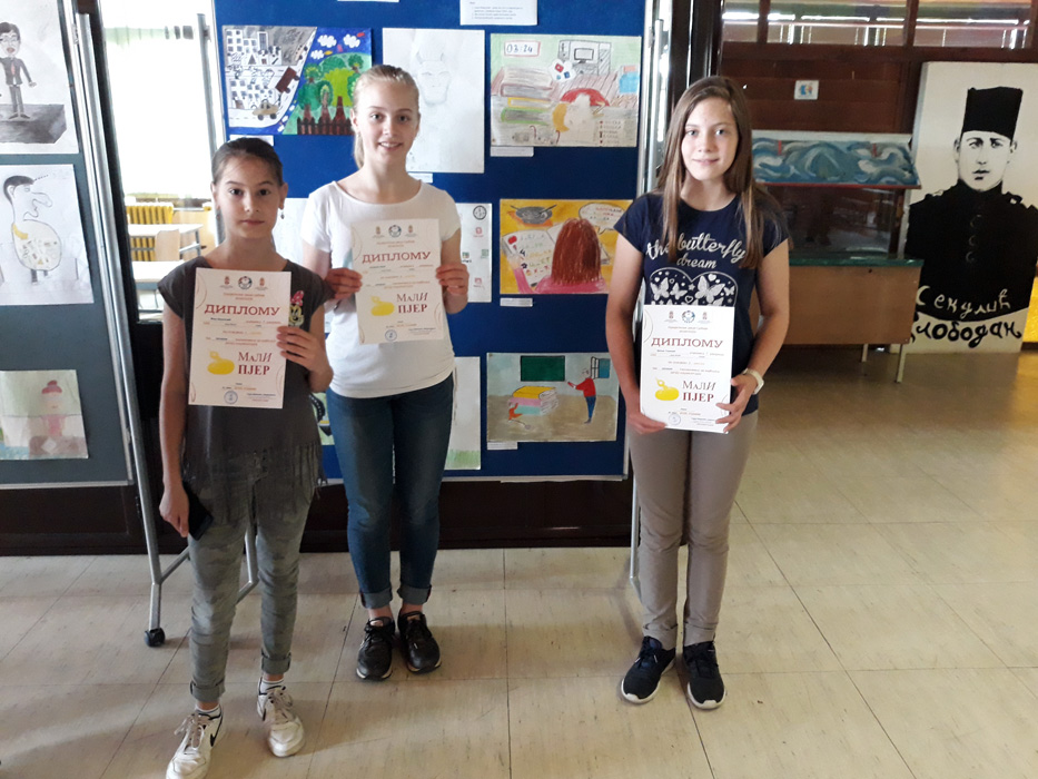 У петак, 4. маја 2018. године, ученици наше школе присуствовали су свечаној додели диплома освојених на Окружном такмичењу из ликовне културе. На конкурсу “Мали Пјер” за најбољу дечју карикатуру, ученица Маја Иванковић VI2 освојила је прво место, Јулијана |