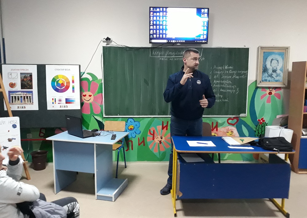 У препуној учионици ликовне културе и у веома пријатној атмосфери, ученицима су на занимљив и креативан начин представљена занимања архитекте, лекара, зубара, дефектолога, анестетичара, ИТ стручњака. Такође, представљен им је и рад Сектора за ванредне ситуације када је реч о заштити од пожара.