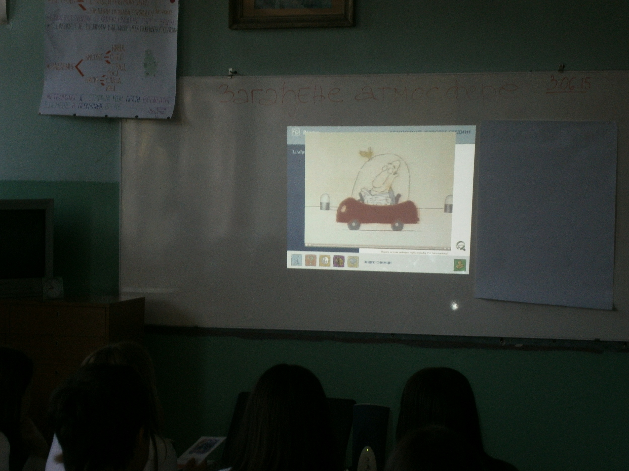 Тема часа била је Загађивање атмосфере – глобално загревање, озонске рупе, киселе кише, мере заштите, а циљ часа да ученици увиде значај здраве атмосфере и важност наше спремности, као становника ове планете, да је сачувамо за будућност.