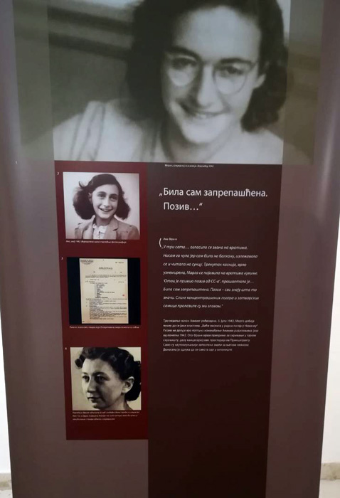 Путујућа изложба „Ана Франк – историја за садашњост“ до сада је обишла више од 300 локација у целом свету, а у Србију је дошла у склопу пројекта „Хисторија, Историја, Повијест – лекције за садашњост“. До сада је имала 15.000 посетилаца у Србији, а у региону више од 60.000.