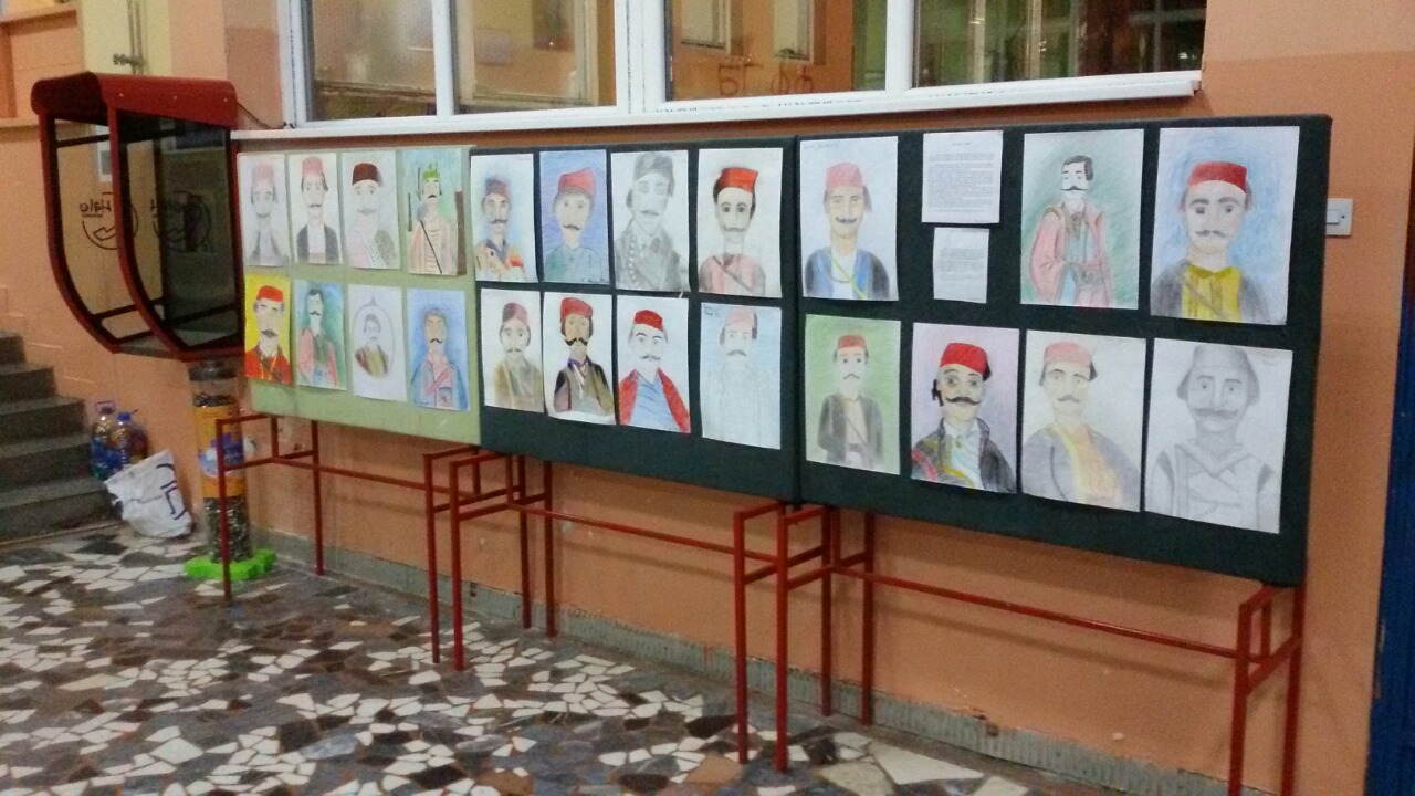Изложба ликовних и литерарних радова је постављена у холу школе.