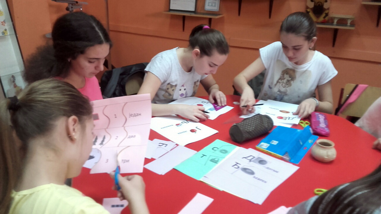 Радионица је трајала два сата, од 12:00 до 14:00 часова. Након упутстава наставнице Данијеле, ученици су са задовољством и уживањем, у сарадничкој и пријатној атмосфери, бојили, сецкали, слагали припремљен материјал. Израдили су едукативни материјал из различитих области учења: српски језик (слово-слика-реч), математика (количина и симболи до 10, табла за сабирање), географија (пузле-континенти)…