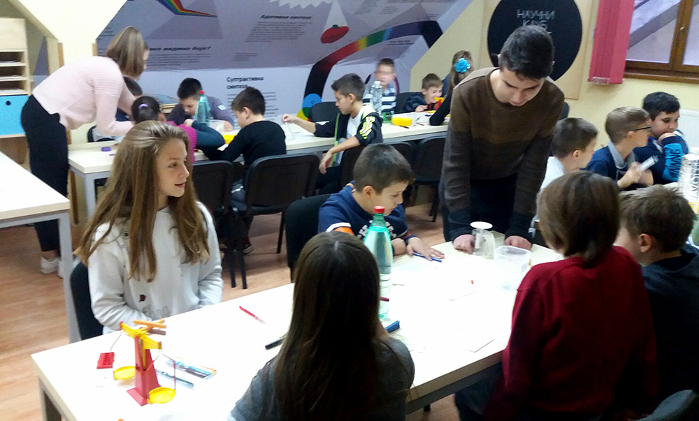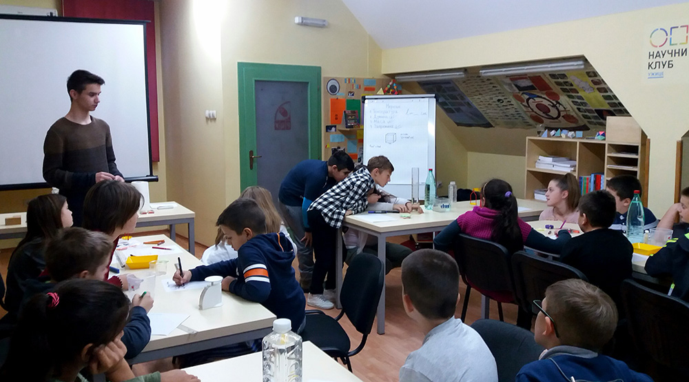 Кроз низ практичних активности у мерењу дужине, масе и запремине, четвртаке су водили Јеленa Радовановић, наставницa физике и аутор пројекта „Корак у физику“, и бивши ученици ОШ „Слободан Секулић“ који имају вишегодишње искуство у реализацији активности вршњачког учења: Кристина Милановић, Кристина Аџић и Матија Павић.