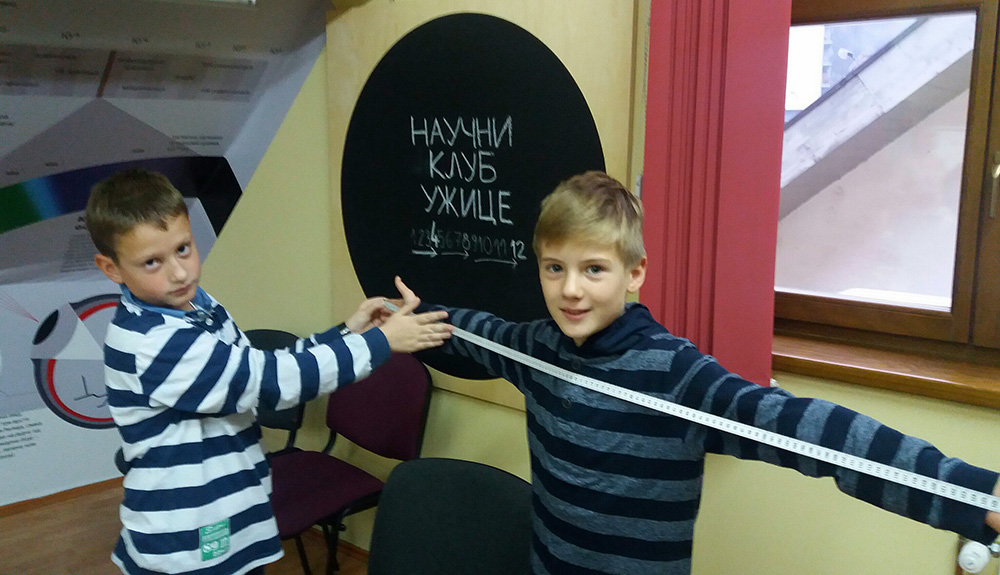 Радионица „Мерење“, у оквиру пројекта „Корак у физику“, реализована је 17. новембра 2017. године у просторијама Научног клуба Ужице. У радионици су, са великим интересовањем, учествовали ученици четвртог разреда OШ „Нада Матић“ и ОШ „Слободан Секулић“, уз подршку учитељица: Снежане Ђурић, Стане Курћубић и Марије Тошић.