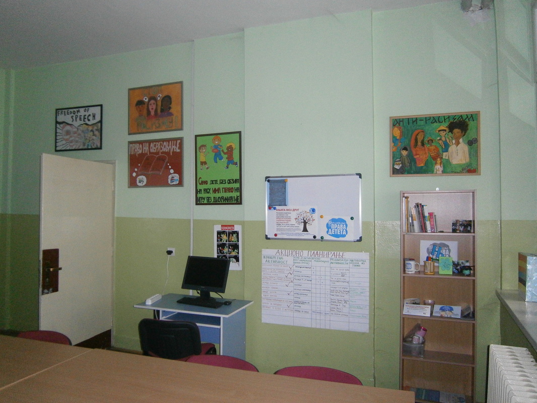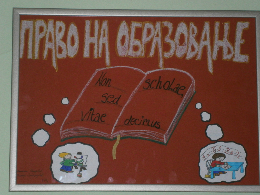 У оквиру пројекта Образовање за права детета, ученици VII и VIII разреда, који су завршили обуку о дечијим правима, планирали су своју акцију – формирање Кутка дечијих права у школској читаоници. То је место где чланови Ученичког парламента, али и сви други ученици,  могу да се окупљају, договарају, планирају даље акције и разматрају нека битна питања везана за дечија права, као и за све друге аспекте школског живота.               На полицама Кутка налазе се књиге о дечијим правима, као и о другим темама и питањима које су важне за њихово одрастање.                                                              У оквиру своје акције, ученици VII и VIII разреда израђивали су на часовима ликовне културе паное на тему дечијих права. Неки од најлепших паноа красе зидове Кутка и школске читаонице.