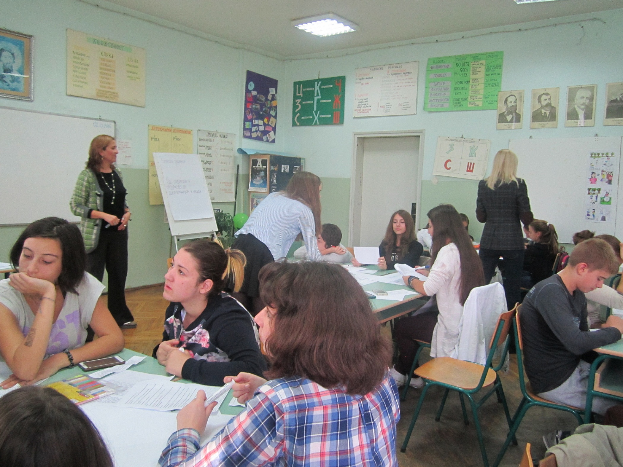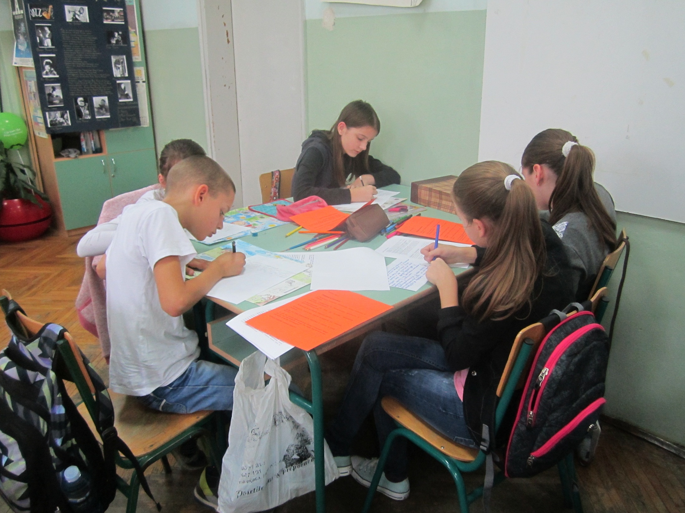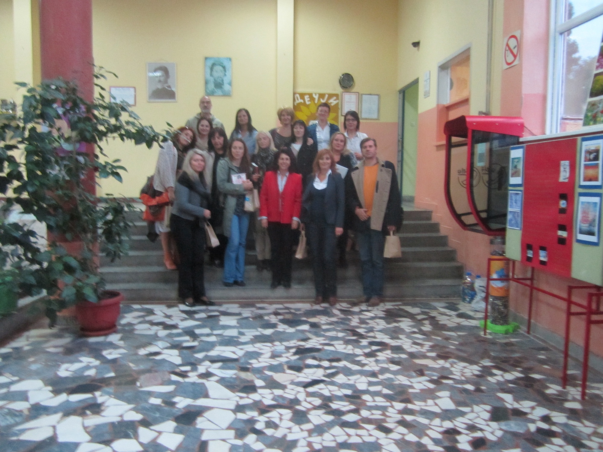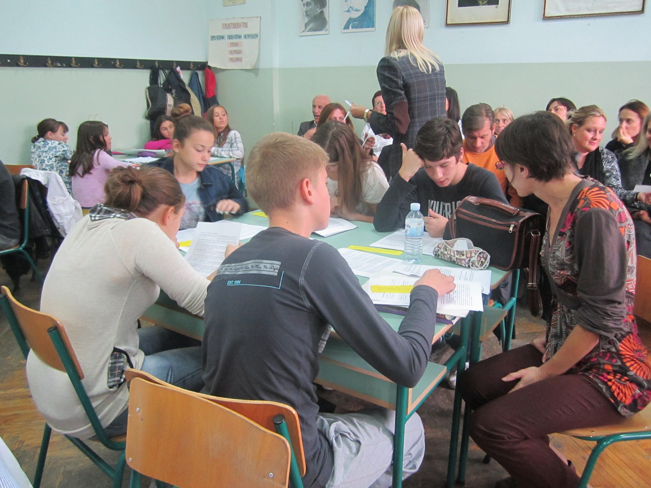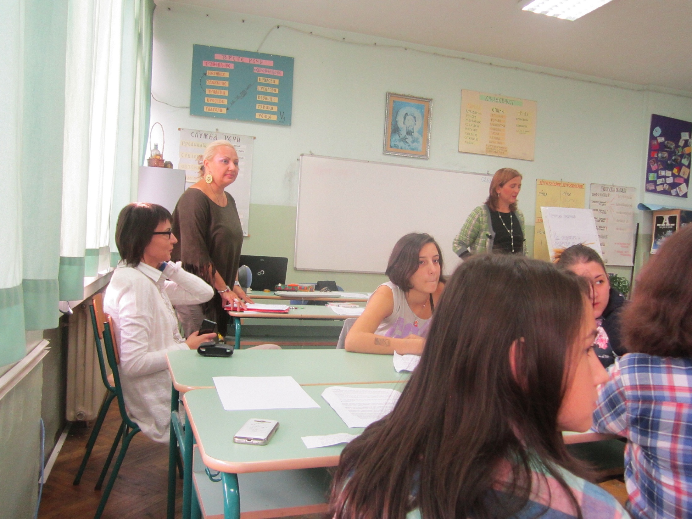 Приликом посете нашој школи гости су присуствовали тематској радионици „Од стереотипа и предрасуда до дискриминације и насиља“ коју су припремиле и водиле наставнице: Снежана Цветковић, наставница српског језика, Оливера Шуљагић, наставница ликовне културе, Мирјана Савић, наставница музичке културе и Ана Веснић, наставница историје. У овом интегративном, међупредметном приступу учењу о дискриминацији и насиљу активно су учествовали ученици од петог до осмог разреда. Вођени наставницама и својим искуством, ученици су активним учешћем говорили о узроцима настајања, препознавању, реаговању и превазилажењу дискриминације инасиља. Препознавали су облике дискриминације и насиља у књижевности, историји, музици која је настала као израз дискриминације, говорећи о насиљу и дискриминацији у свом животу и окружењу. Ликовно и вербално изражавали су лична искуства и осећања о ситуацијама када су били дискриминисани или били жртве насиља, као и о начинима превазилажења таквих ситуација.