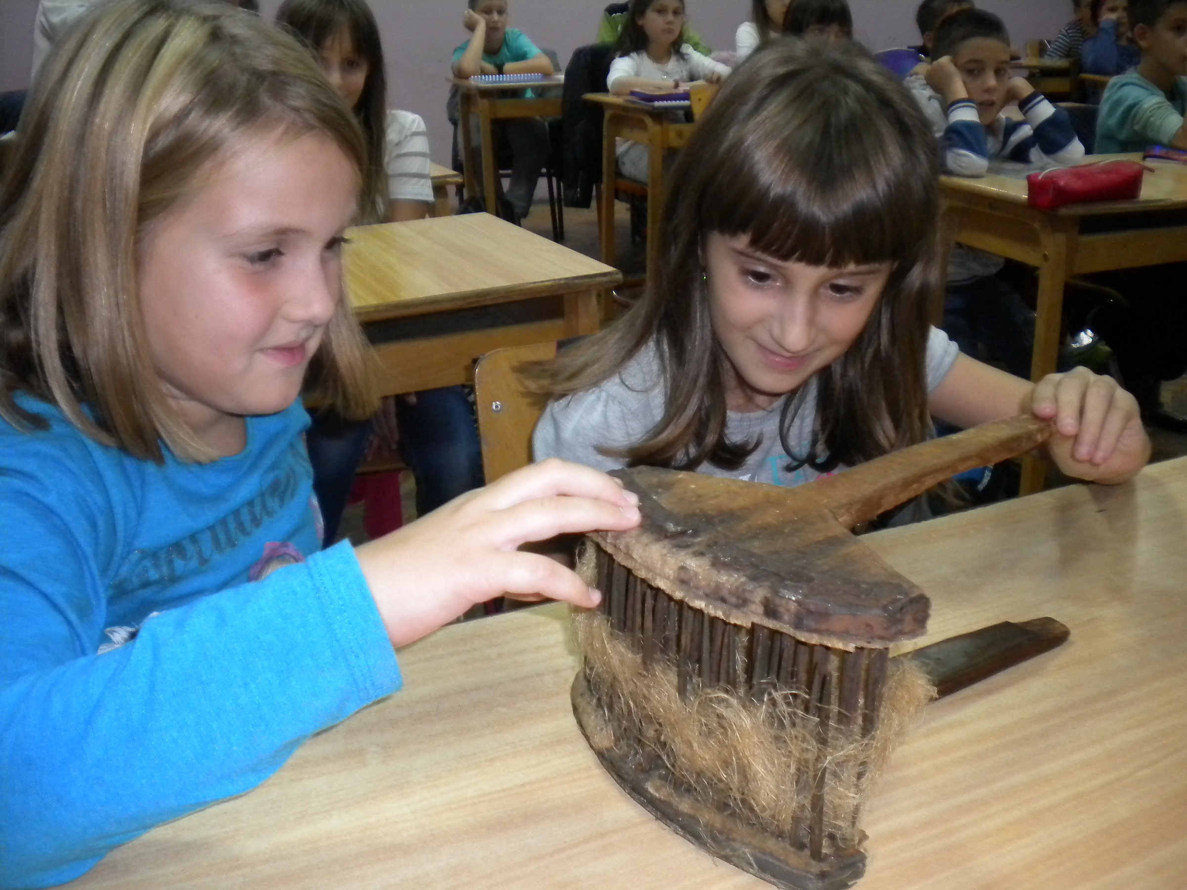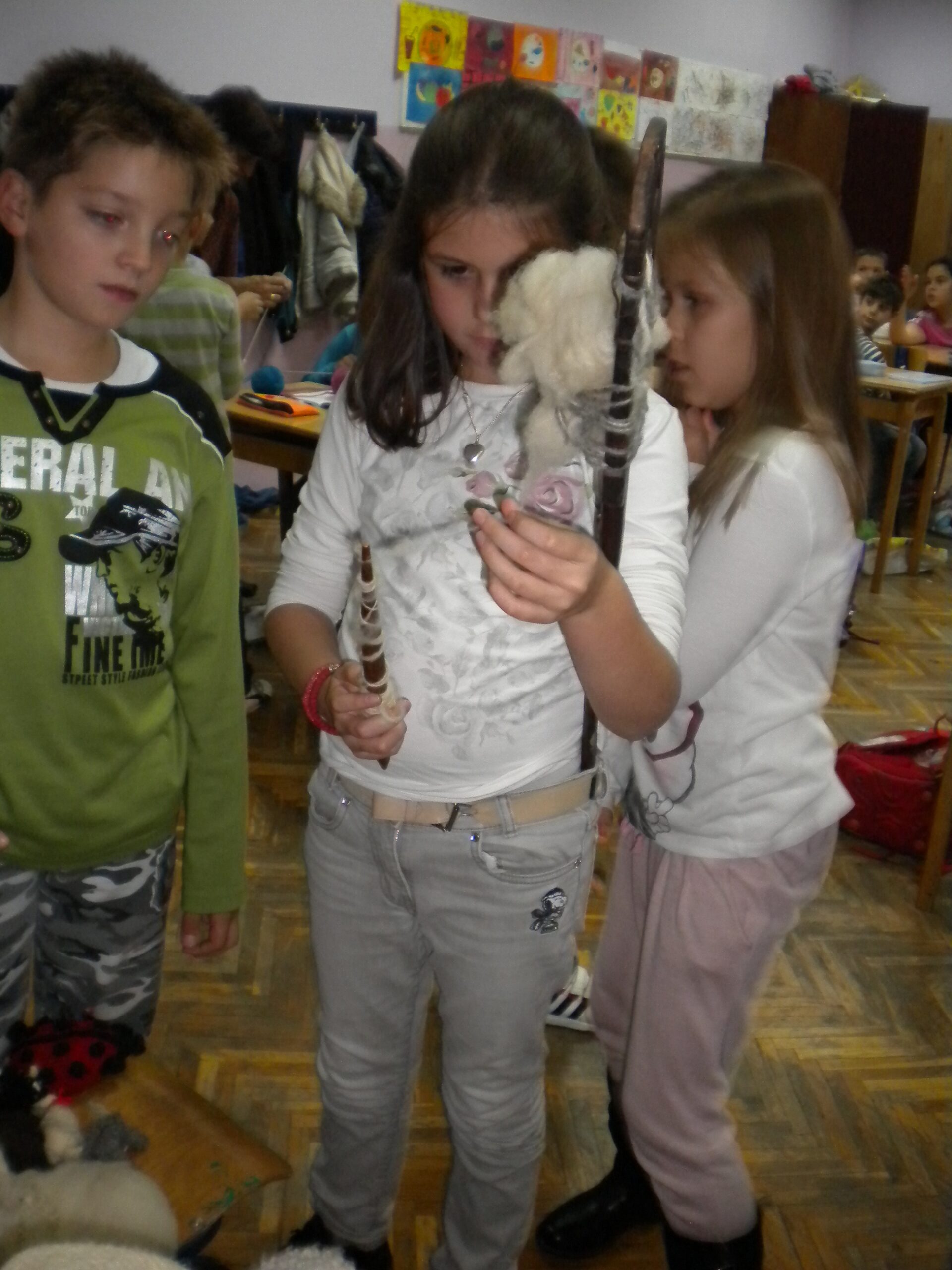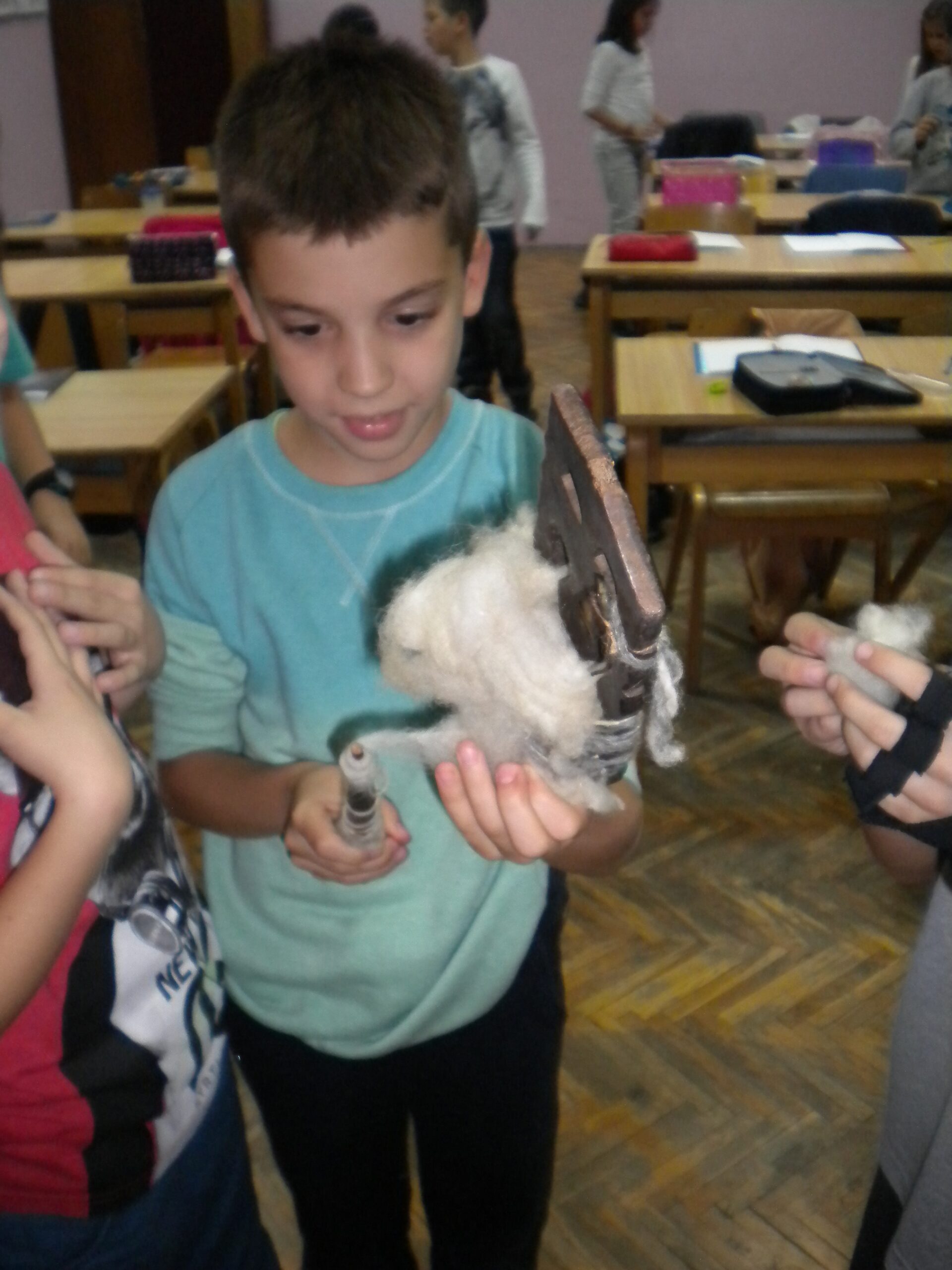Ученици су упознали начин како су и помоћу чега људи у прошлости редили и прели вуну и плели одевне предмете.