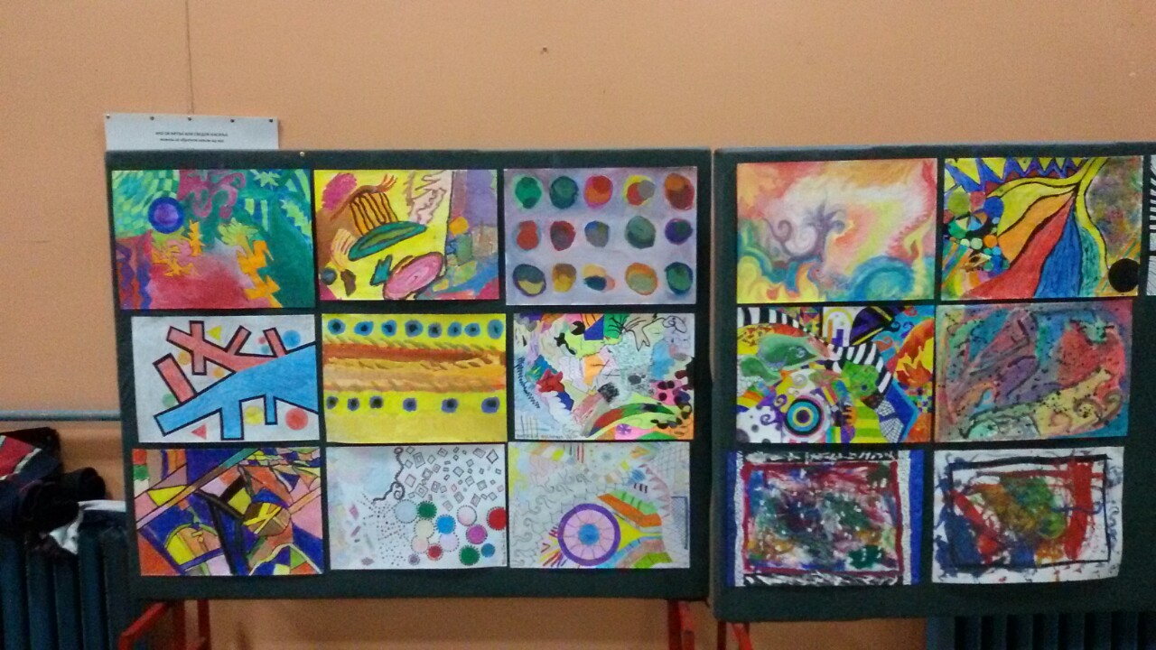 У холу школе постављена је нова изложба ученичких ликовних радова на тему апстрактног сликарства. Изложени су радови ученика VI и VIII разреда.