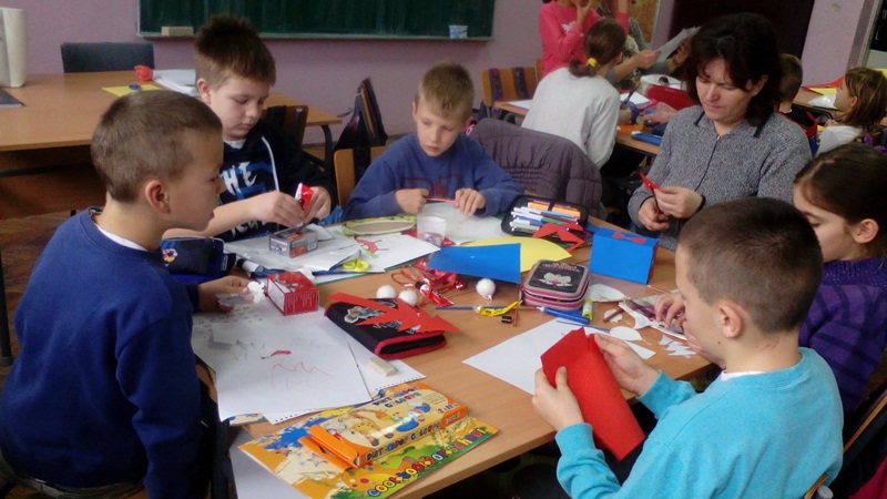Рад се одвијао по групама. Свака група је добила по једног родитеља – ментора који им је открио мале тајне успешне израде честитки, пружао потребне информације и помагао у раду.