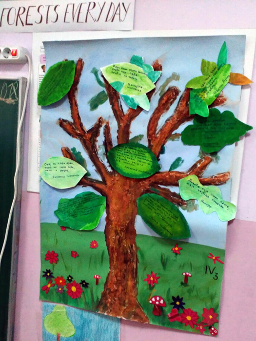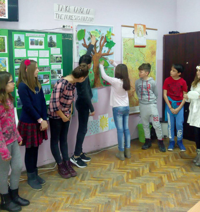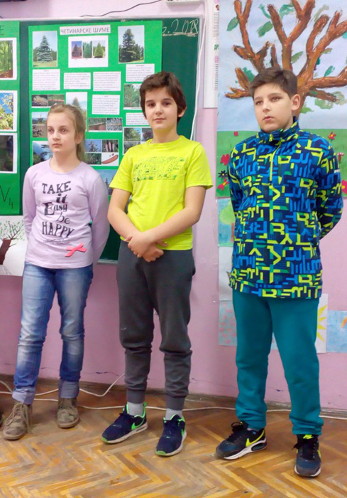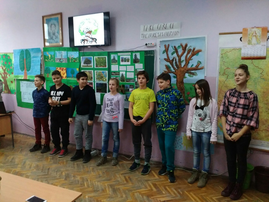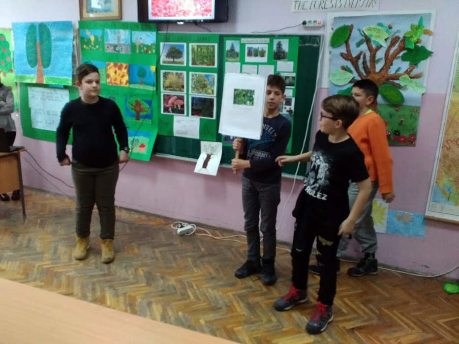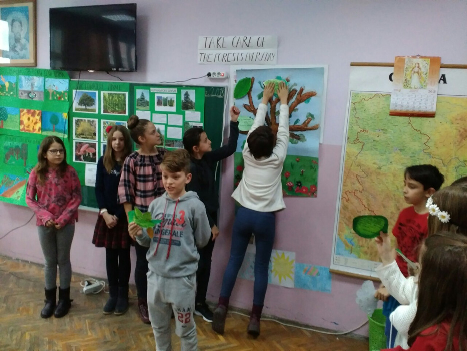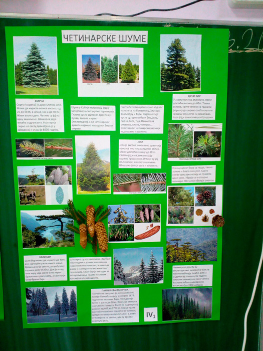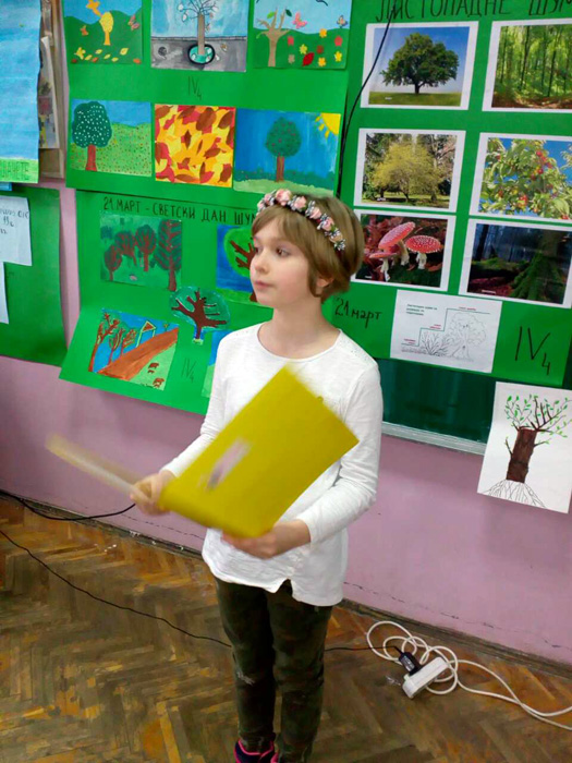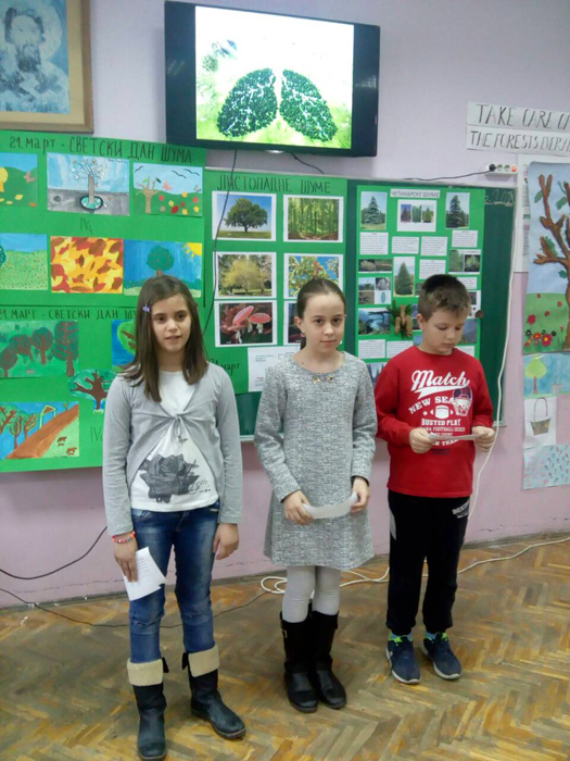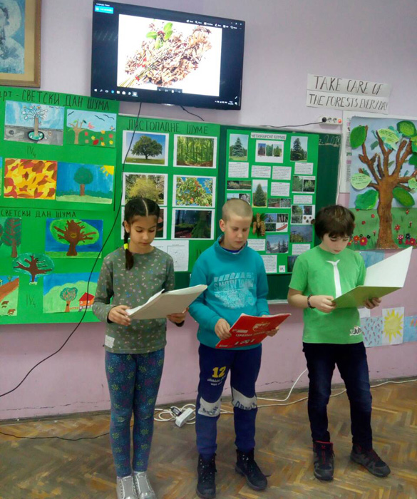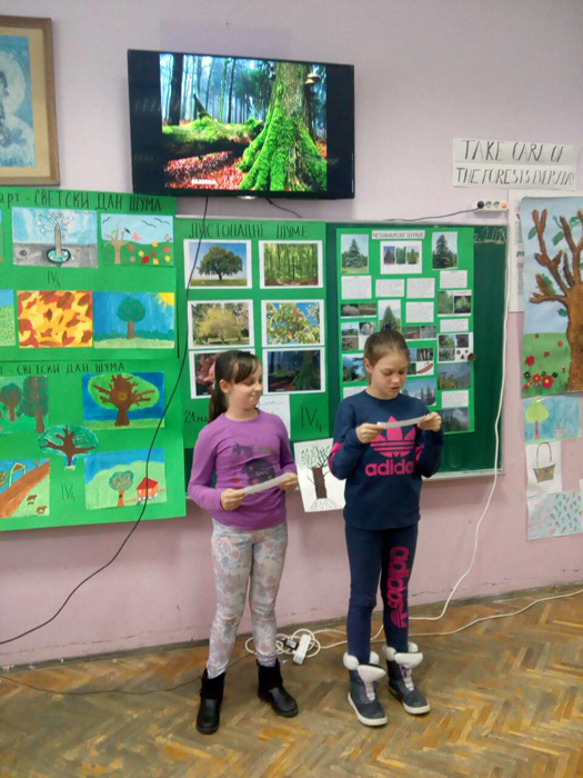 Ученици IV1, IV2, IV3 и IV4, заједно са својим учитељицама Надеждом Грујичић, Милином Шуњеварић, Славицом Ћериман Китић, наставницом енглеског језика Савом Пановић и вероучитељком Силвијом Аћимовић, презентовали су своје истраживачке радове о листопадним и четинарским шумама, казивали изреке и пословице о шумама, проналазили занимљивости о дрвећу, рецитовали песме и говорили поруке о заштити шума на енглеском језику.