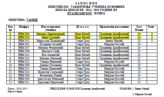 Наши ученици су постигли запажене резултате на такмичењу из страних језика. Од укупно 9 ученика који су се пласирали на Окружно такмичење из енглеског и италијанског језика, из наше школе је 4 ученика.