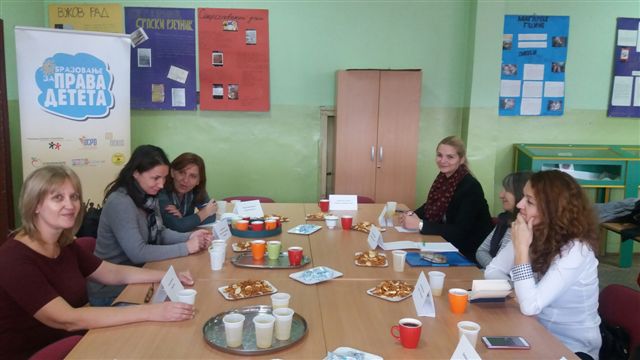 Други део посете протекао је у разговору са школским координаторима и члановима тимова за ОПД обе школе. Било је речи  о примени Индикатора остарености права детета у школи: