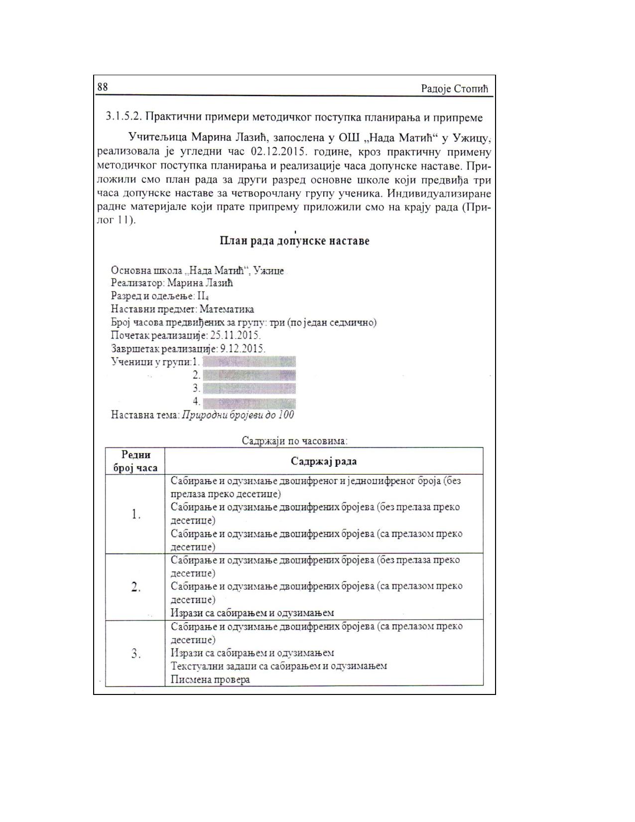 Ових дана из штампе је изашла књига Допунска настава Р. Стопића, чији су рецензенти проф. др Н. Трнавац, проф. др З. Мркаљ и доцент др Ј. Стаматовић, а издавач РЦУ. Након Уводних разматрања и Истраживања следи Методички осврт, у оквиру кога је приказана практична примена методичког поступка планирања и реализације часа допунске наставе који је осмислила и у II4 реализовала учитељица Марина Лазић (план рада, писана припрема и индивидуализирани радни материјали за ученике).