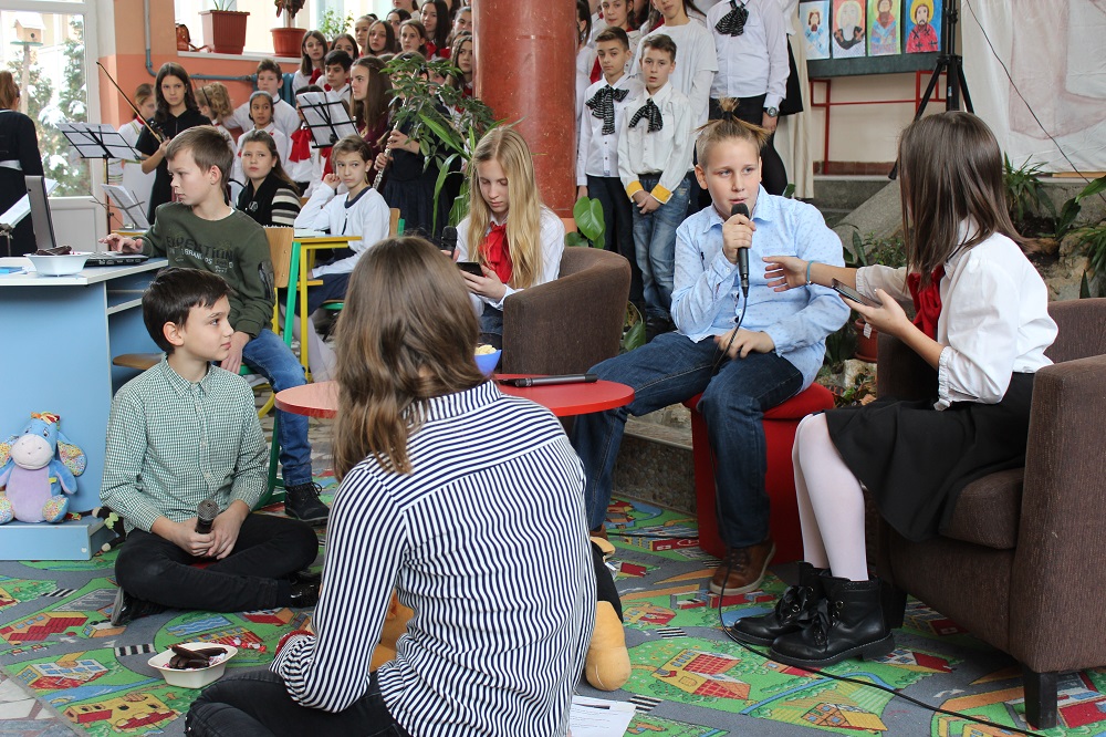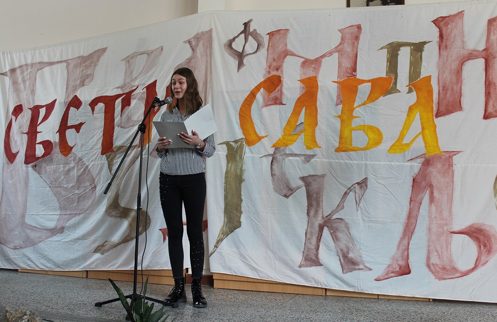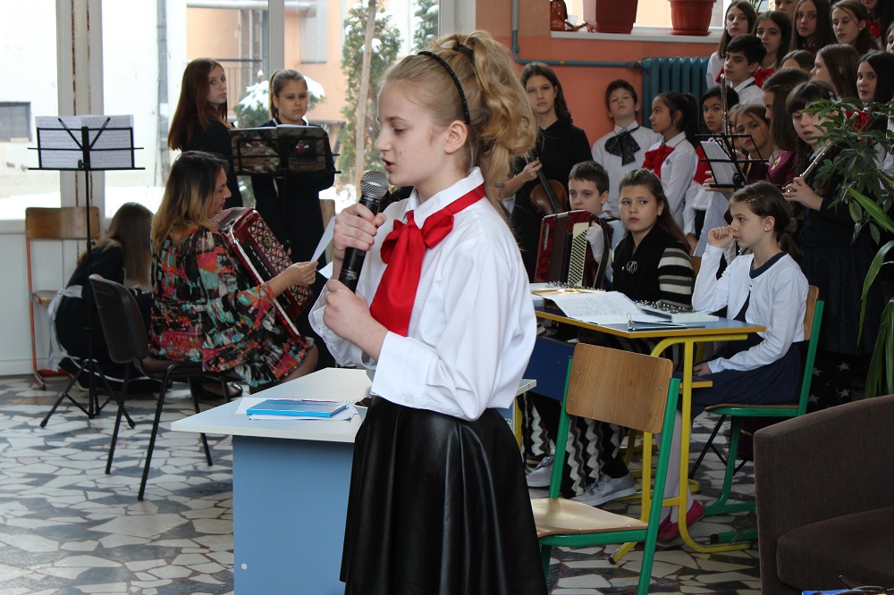 Ученица Теодора Шаренац, водитељка програма, говорила је за РТС који је уживо преносио почетак приредбе у нашој школи. Теодора је и завршила програм, уз захвалност присутнима и наставницима, „који су нам помогли да наша приредба буде достојна личности коју обележавамо“.