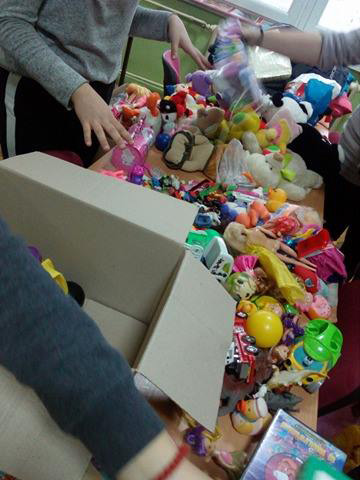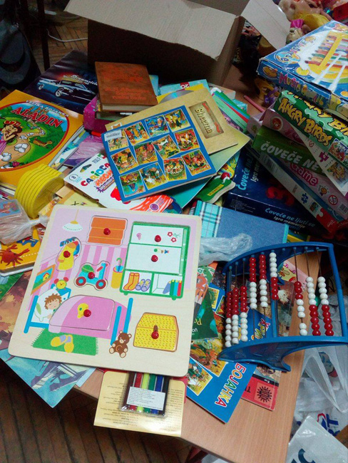 Овако је изгледало сортирање и паковање прикупљених играчака и књига.