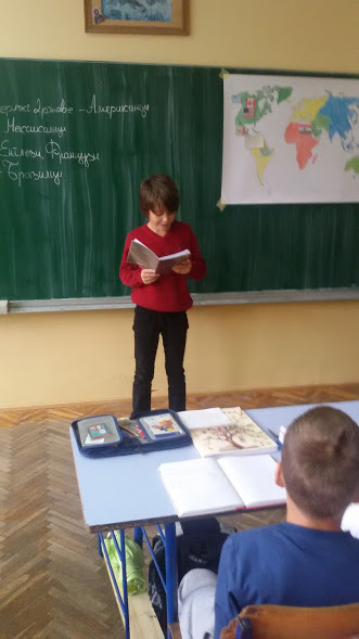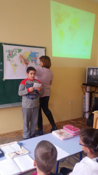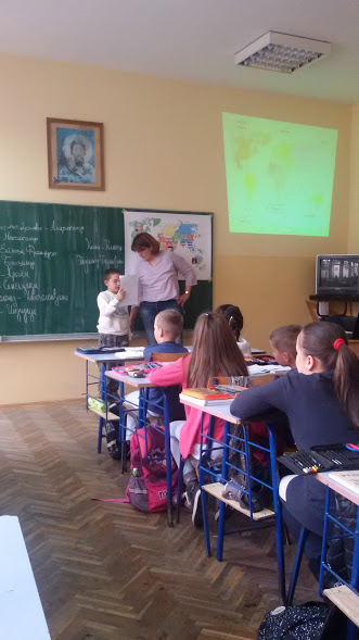 Угледни час српског језика, са циљем да ученици науче правилно писање имена народа, одржала је учитељица Снежана Ђурић, 21. октобра, у одељењу III2.