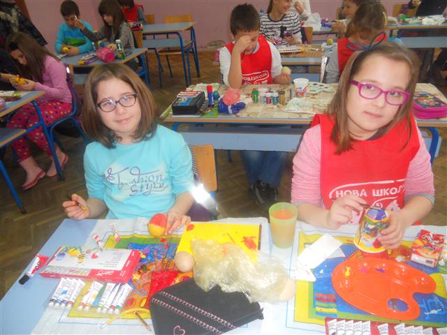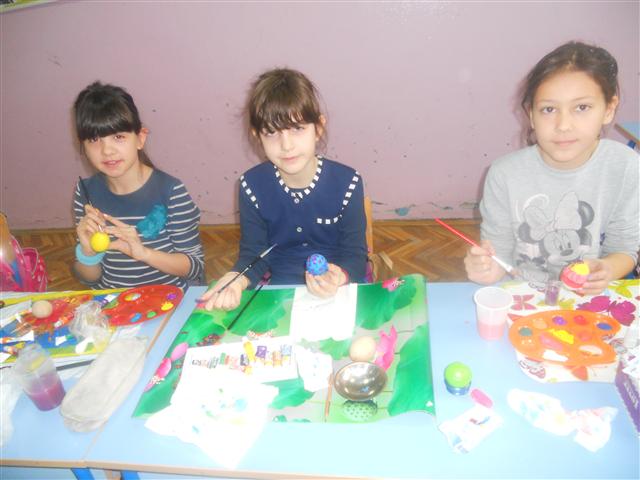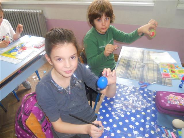 Било је заступљено више техника, од темпере до декупажа. На радост свих ученика добили смо корпу предивних, сјајних јаја.