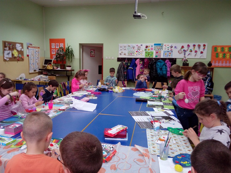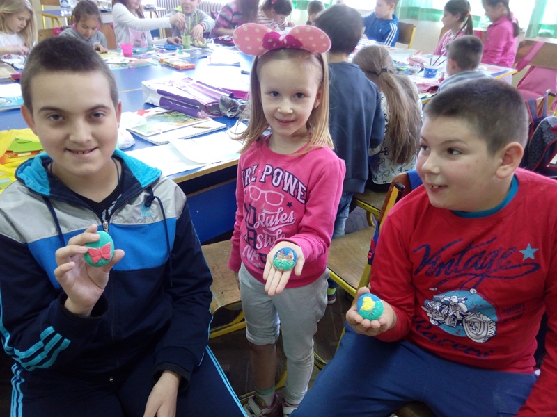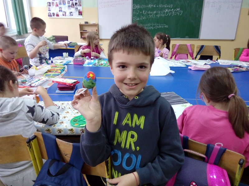 Милена Гудурић (учитељица I3 одељења) и Данијела Ватазовић (дефектолог) организовале су низ радионица инклузивног типа током месеца априла, а поводом предстојећих Ускршњих празника. Радионицама је претходио разговор са ученицима о важности слављења Ускрса, рецитовању песама и прича. Ученици су осликавали корпице за јаја, магнете и јаја. Ученици са потребом за додатну образовну подршку су са одушевљењем учествовали у радионицама и дружењу са првачићима.Сви су кући понели свој уметнички рад.
