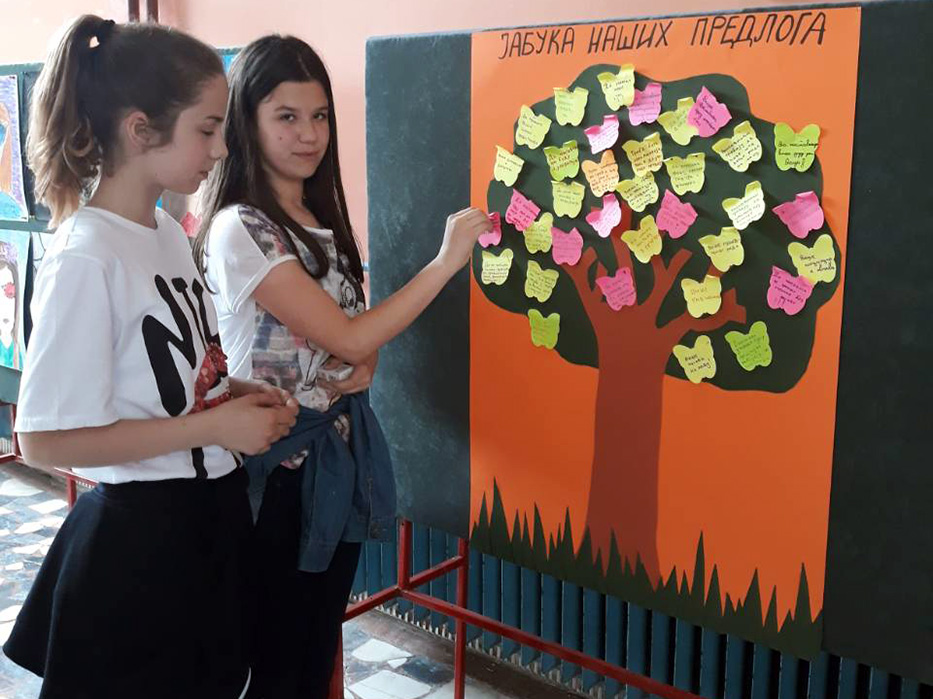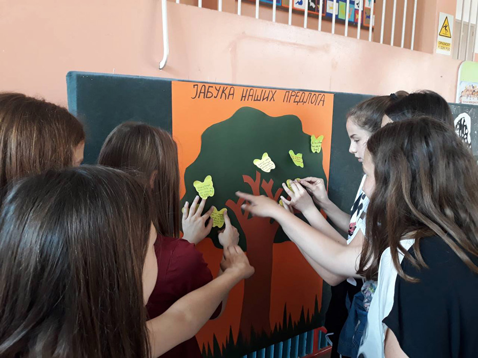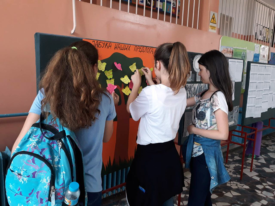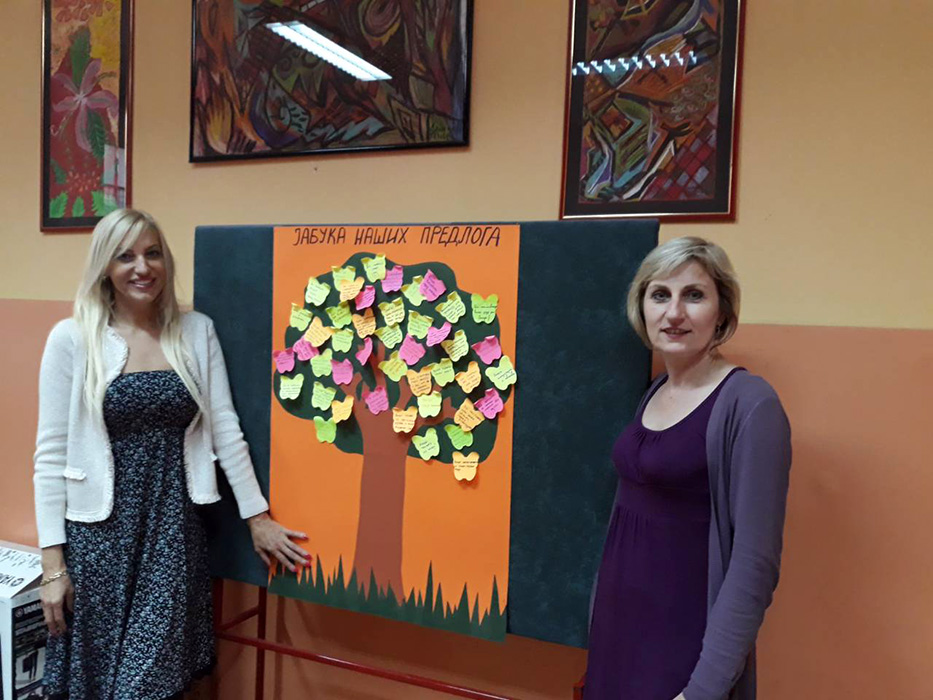У холу школе, 14. маја 2018. године, постављен је хамер на коме је нацртана крошња јабуке. Сви заинтересовани ученици имали су прилику да у периоду од 13 до 14 часова дају свој предлог за унапређивање образовно-васпитног рада школе. Предлог у вези са унапређивањем наставе и ваннаставних активности писали су на жутом, а предлог у вези са унапређивањем односа између ученика и наставника на црвеном стикеру, а потом их лепили на јабуку.