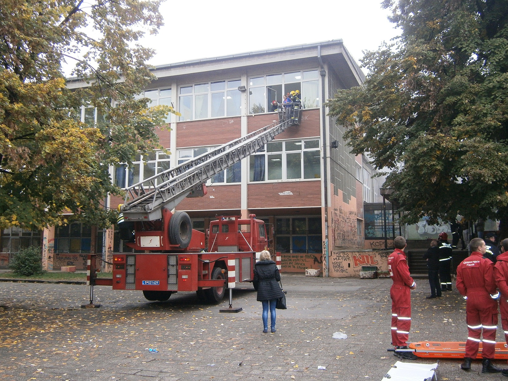 Ватрогасно-спасилачка јединица и Црвени крст Ужице реализовали су у нашој школи, 23. октобра 2015. године, планирану показну вежбу евакуације у случају пожара. У оквиру ове вежбе, симулиране су активности напуштања и евакуације из школске зграде, гашење пожара и збрињавање повређених. Вежба је пажљиво припремана и реализована према унапред утврђеном плану.