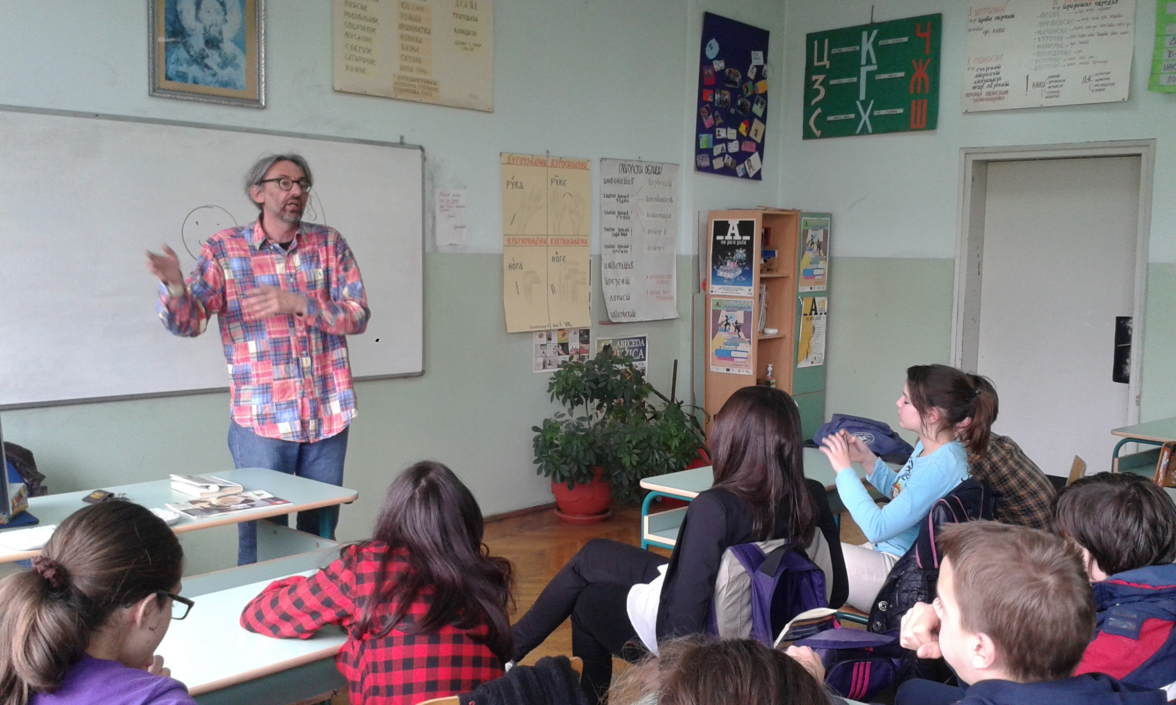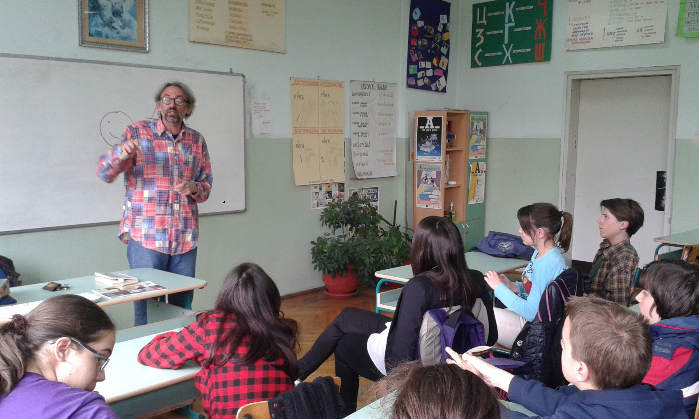 Ненад Величковић, сарајевски писац, колумниста, професор на Одсјеку за књижевност Филозофског факултета у Сарајеву и један од оснивача књижевног фестивала „На пола пута“ у Ужицу, био је гост наше школе у среду 29. априла 2015. године. Књижевни фестивал „На пола пута“ одржан је ове године десети пут у Ужичкој гимназији, а у оквиру фестивалских предавања, Ненад Величковић је ученицима наше школе одржао час на тему „Башта сљезове боје“ Бранка Ћопића. Говорећи о овој Ћопићевој приповеци и њеним јунацима, Величковић је, у непосредном и живом разговору са ученицима, стигао до оних њених слојева значења који су младим читаоцима актyелни и важни и данас – колико образовни систем прати интересовања и потребе данашњих генерација, какву би школу они желели и шта би конкретно мењали у школи како би им знањебило применљивије у животу.